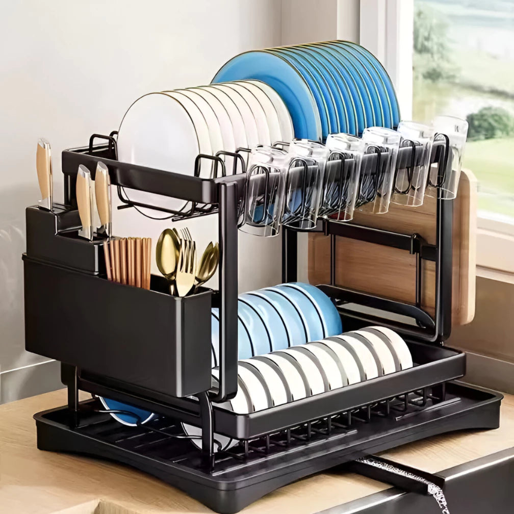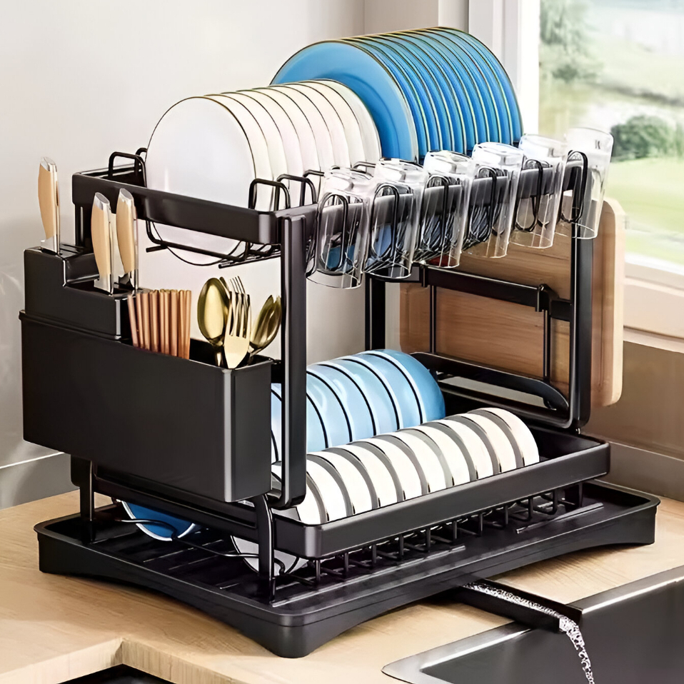 El Escurridor de Platos negro de acero inoxidable, 2 niveles, es la solución perfecta para mantener tu cocina organizada, estilosa y funcional. Capacidad, resistencia y diseño moderno reunidos en un solo producto.